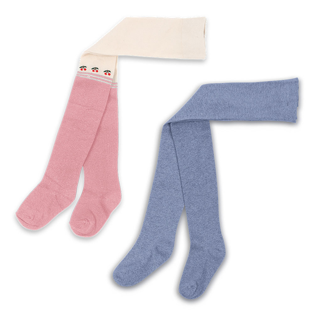 2-pak Cherry strømpebukser (104-110 cm) PURPLE/PINK DOLPHIN CHERRY LUREX