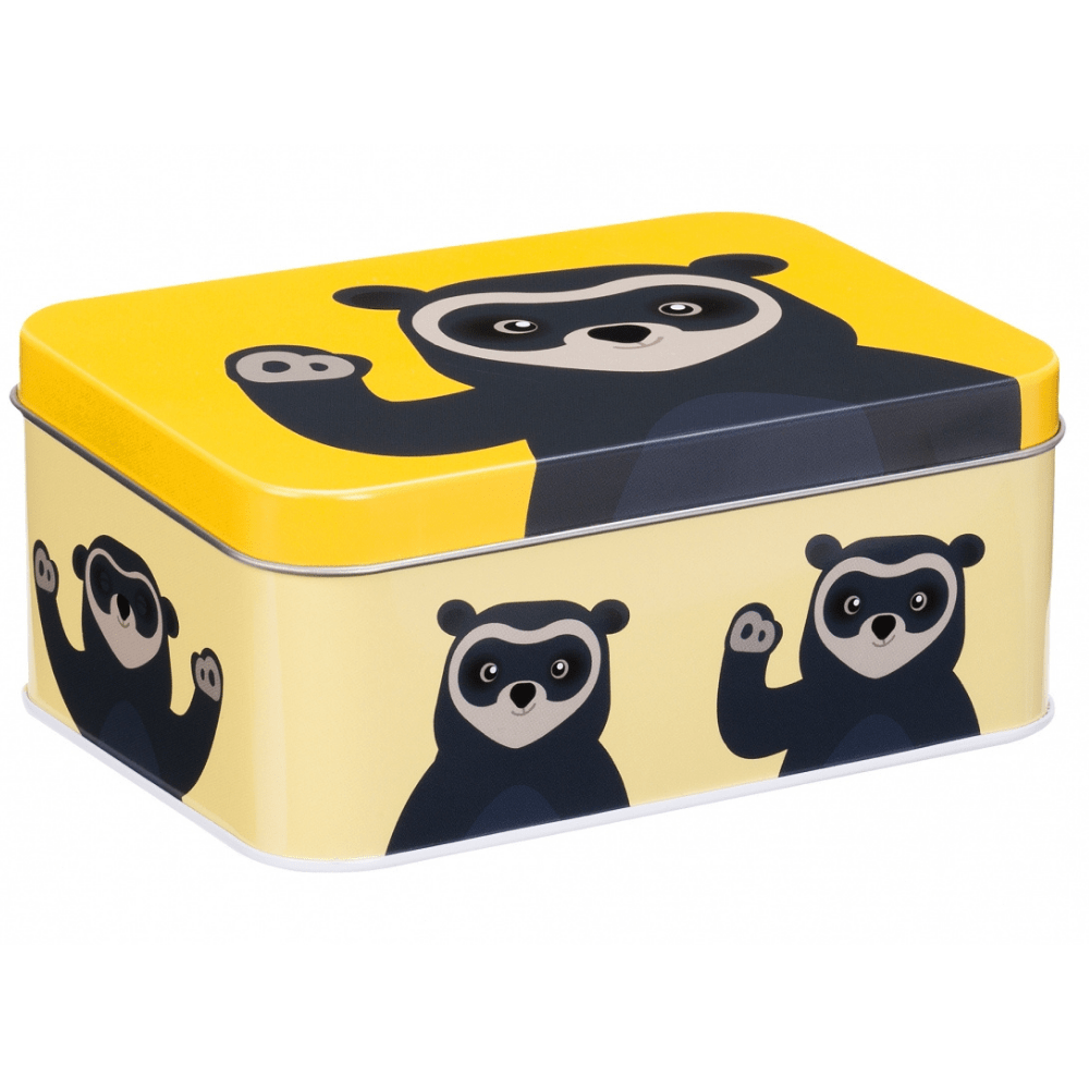 Aflang tin boks – brillebjørn gul