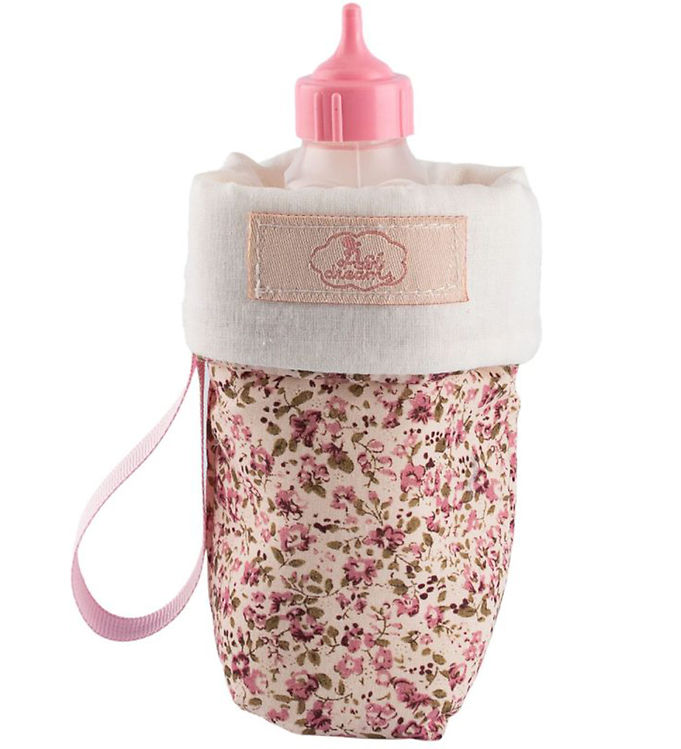 Asi Dukketilbehør – Sutteflaske m. Opbevaringspose – Rosa/Blomst