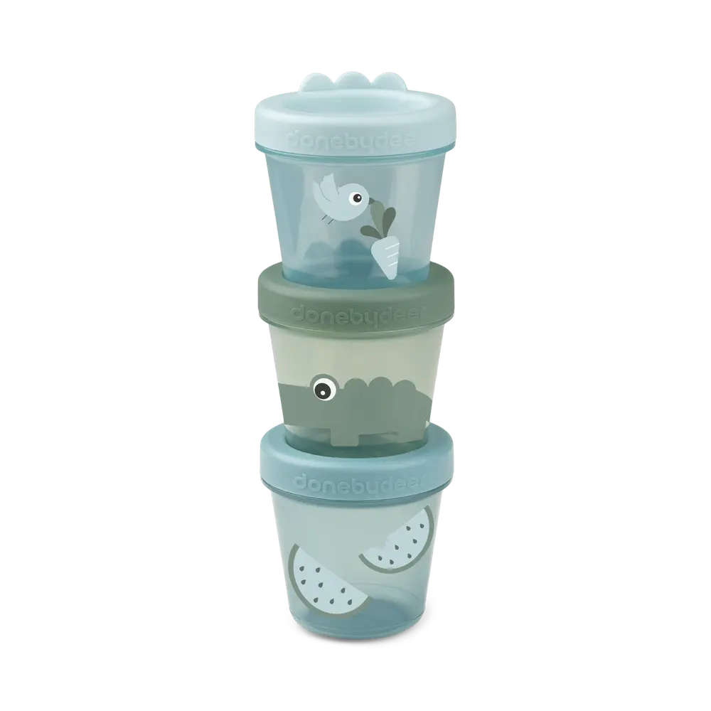 Brug dette praktiske sæt af tre babymad bøtter og lad en Deer friend holde et vågent øje med godterne indeni. Bøtterne er perfekte til snacks til børnehaven eller skolen eller til at gemme rester af hjemmelavet mos i fryseren. De transparante beholdere ka