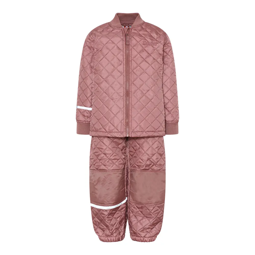 Til dage, hvor det er for varmt til vintertøj og for koldt i en tynd sommerjakke, er termotøj fra CeLaVi perfekt. Kan bruges alene eller indenunder regntøjet for at give lidt ekstra varme. Termotøjet er ikke vandtæt, men på knæ og bagdelen er der tilføjet