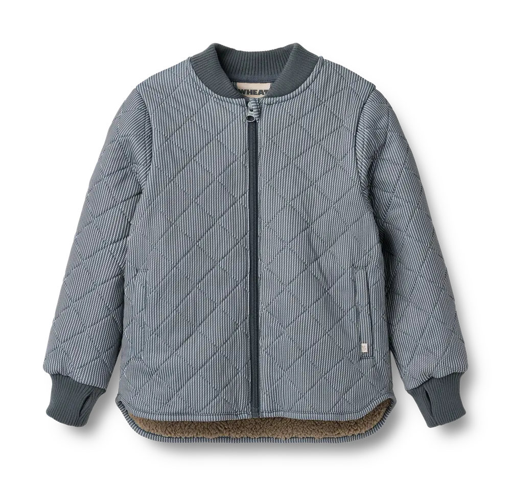 Skøn stribet termojakke med plysfoer til børn. Wheats populære termotøj er en sand hverdagsfavorit, da det bløde og lette materiale gør det behageligt at bevæge sig rundt i. Termojakken er produceret i 100% genanvendt materiale og kan bruges både indendør