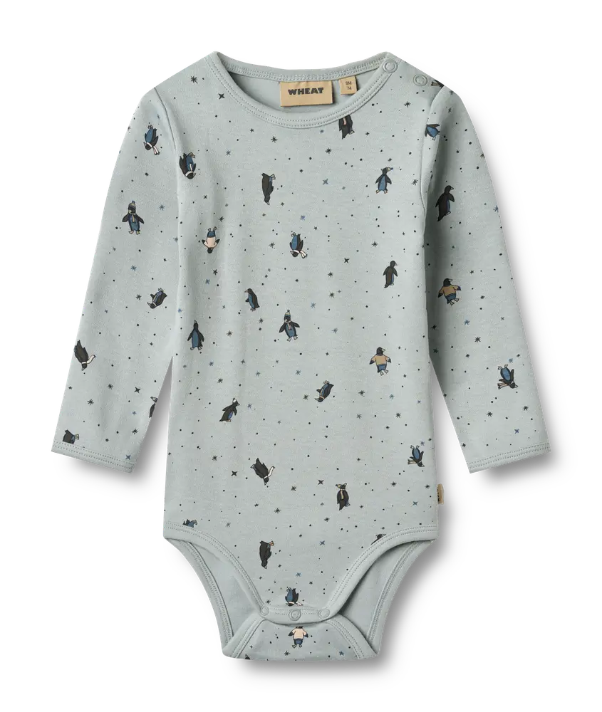 Berti Body Langærmet – Soft rain penguins – 18 MDR.