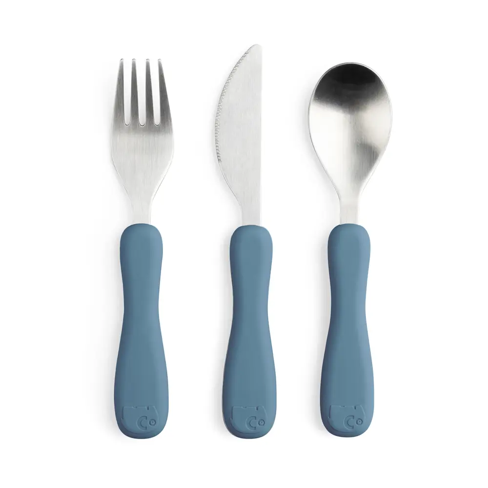 Sættet består af gaffel, kniv og ske og er velegnet til barnet, der skal øve sig i at spise selv. Det ligger godt i en lille hånd, og gør det dermed nemmere for barnet at få succes ved måltidet. Børnebestikket er robust og tåler at komme i opvaskemaskinen