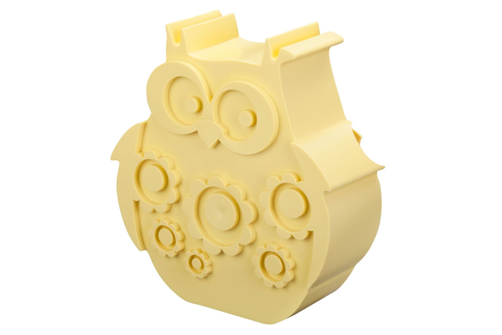 Skovens venner er Blafres venner! Madkassen her er udformet som en ugle og har den fineste lyse gule farve.