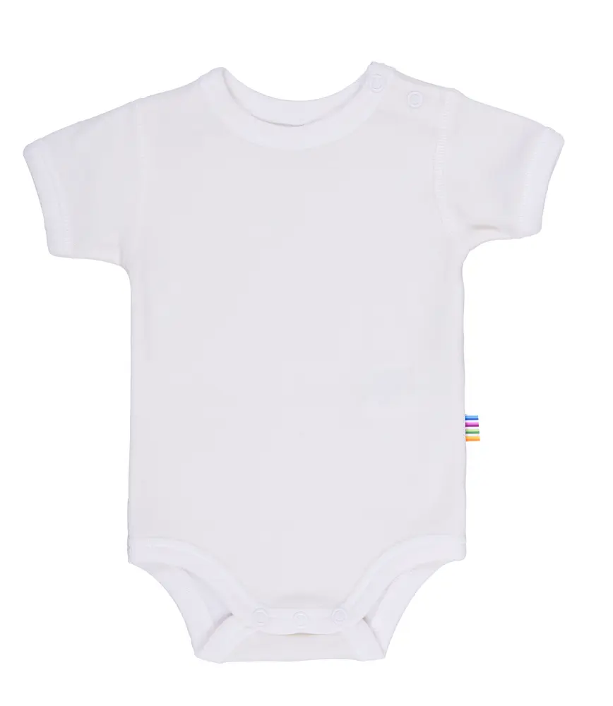 Body K/Æ – Uld/Bomuld – Joha – Natur Sød lille body med korte ærmer, fra danske Joha. Åbnes og lukkes med trykknapper ved den ene skulder og i bunden. Materiale: 48% uld – 47% bomuld – 5% polyamid Uld/bomuld er den super komfortable kombination for den se