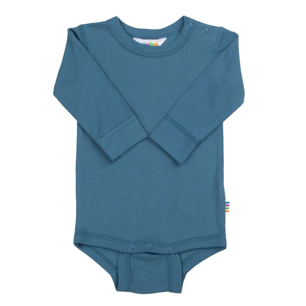Trykknapper på den ene skulder samt mellem benene. En lækker blød viskose kvalitet, baseret på 100% økologisk bambus med en glat overflade, som er rigtig dejlig at have på.