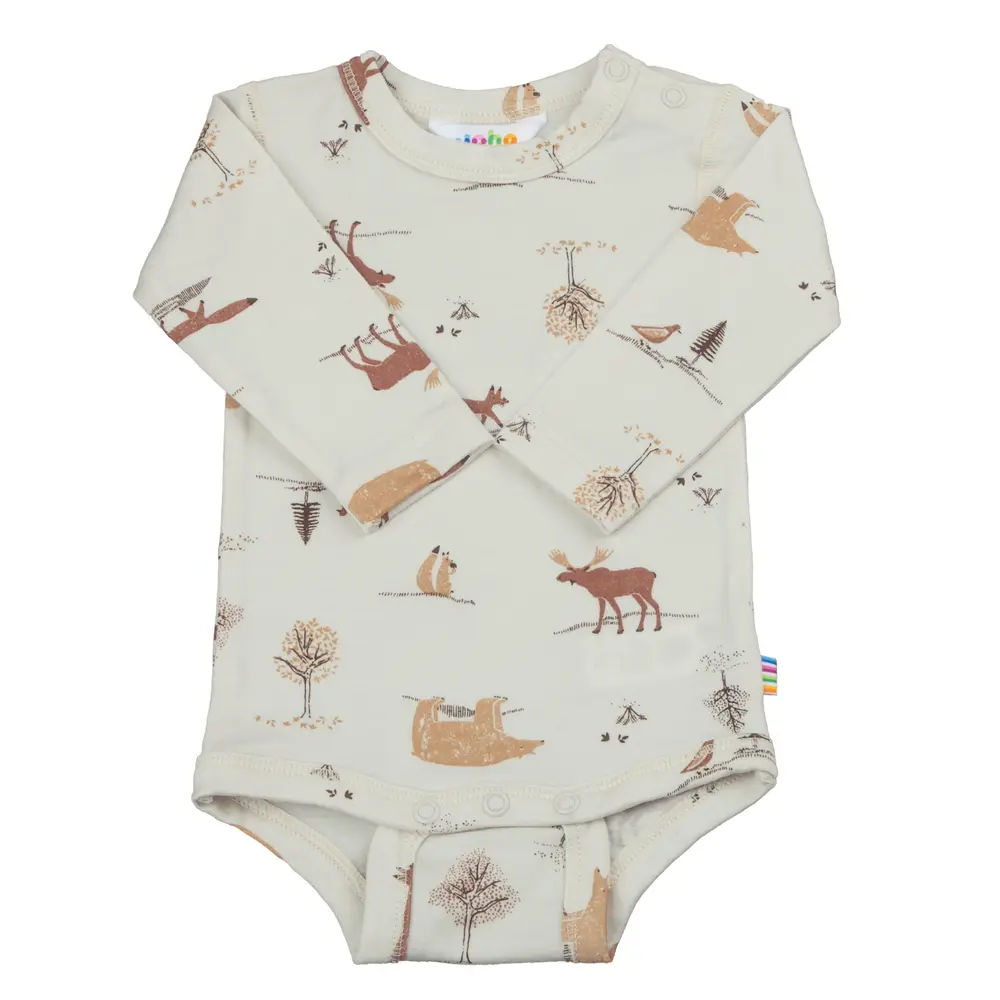 Body med lange ærmer. Trykknapper på den ene skulder og mellem benene for en nemmere påklædning. En ekstra fin og let uldkvalitet som er meget behagelig at have på. Sødt print.