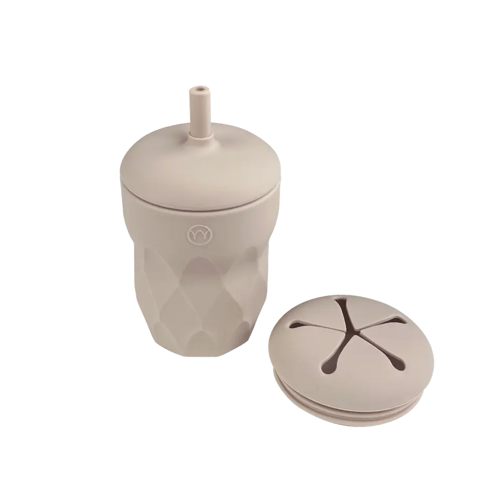 Børnekop med sugerør & snack låg – Dune Beige