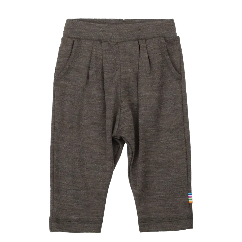 Bukser med behagelig pasform takket være en elastisk linning. Fine små sidelommer tilføjer en charmerende detalje. Stoffet er en elegant, glat og strækbar uldkvalitet med silke, som giver et eksklusivt udtryk. Det melerede materiale understreger det sofis