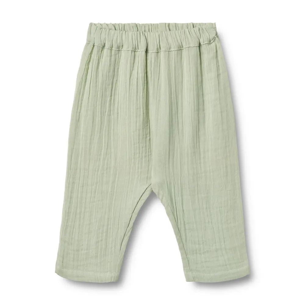 (Indeholder reklamelinks). Bløde bukser i økologisk bomuldsgaze til babyer.