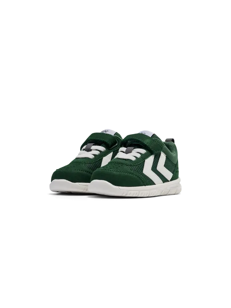 CROSSLITE INFANT sneakeren er designet med tanke på små fødder og er derfor konstrueret med en letvægtsoverdel i mesh indrammet af paneler i imiteret ruskind. Denne hummel® sneaker står på en letvægtsydersål i EVA-skum, der gør det nemmere at tage de førs