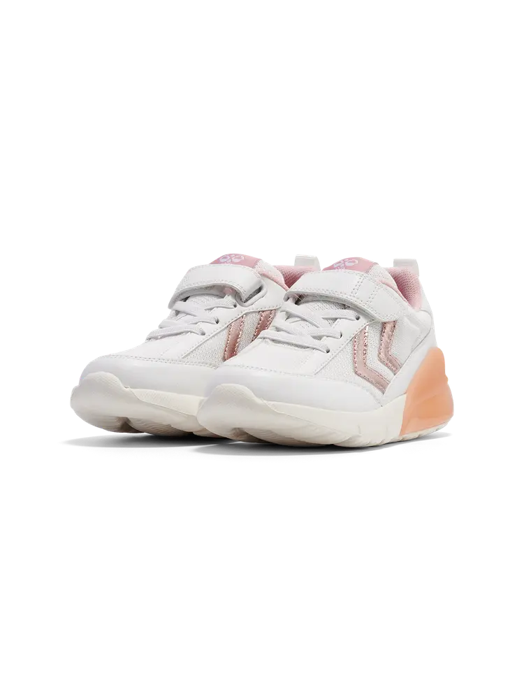 Lys op på legepladsen med DAYLIGHT JR! Børn vil elske at skille sig ud med blinkende lys i hælen og en overdel i mesh og kunstruskind i et stilsikkert design med farvekontraster og klassiske hummel® vinkler. Med slidstærke elastiksnørebånd og en klipbar v