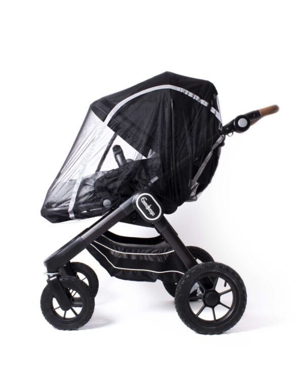 Universalt myggenet med lynlås som gør at det passer godt på vogne, hvor du har brug for at få styret ud gennem myggenettet. Beskytter dit barn mod myg og insekter om sommeren såvel som andre dyr som katte og fugle hele året rundt. Passer til de fleste ba