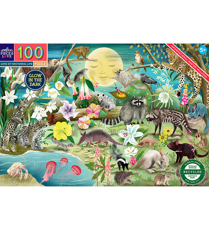 Eeboo Puslespil – 100 brikker – Selvlysende Nattedyr