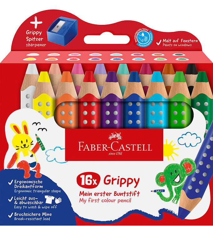 Faber-Castell Farveblyanter – XXL Jumbo Grip + Spidser – 16 stk.