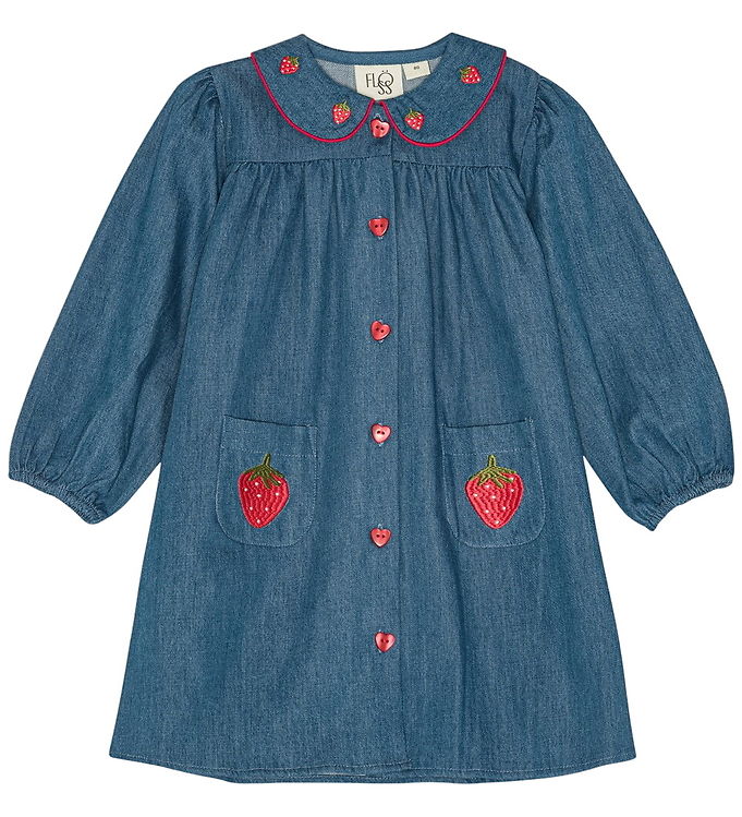 Flöss Kjole – Vilma – Denim – Mid Blue Strawberry