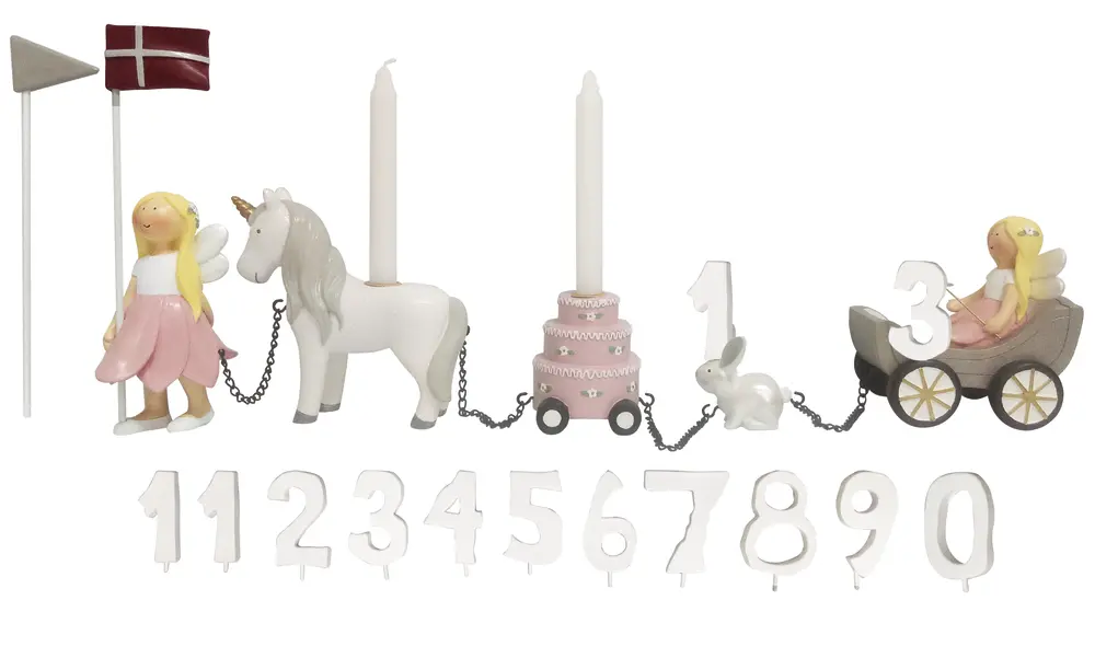 Inklusiv flag og flagranke og 11 tal. Der er plads til to talnumre i toget.