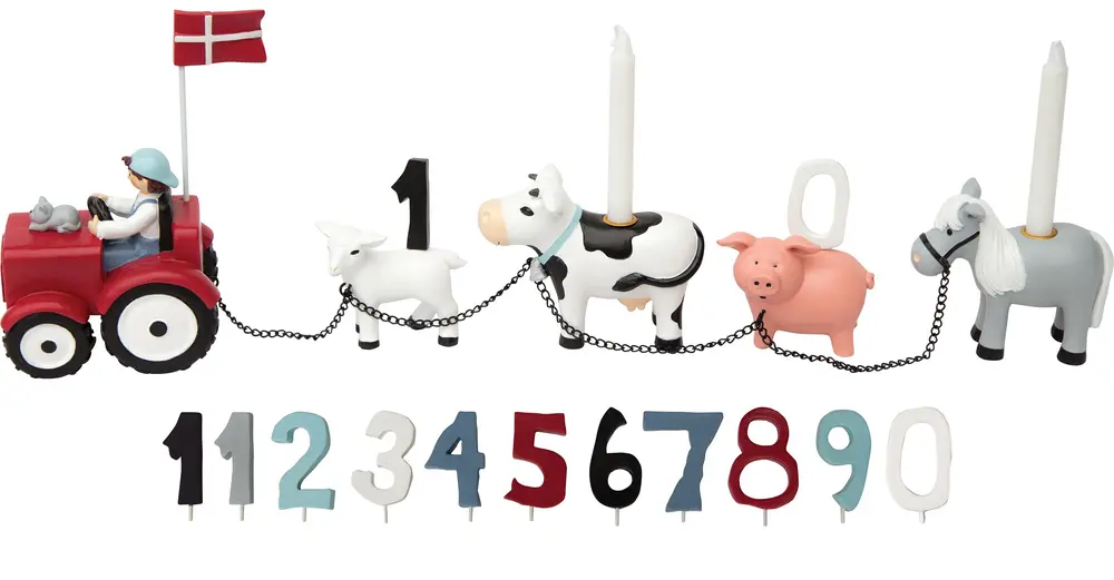Håndmalet fødselsdagstog med 11 tal. Flag kan tages af.
