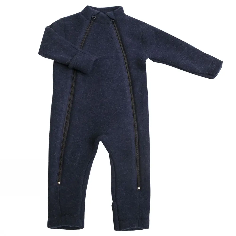 Heldragt med 2 i 1 ombuk ved hænder og fødder. Dobbelt lynlås foran for en nemmere påklædning. En kraftigere børstet uldkvalitet som er ekstra blød og lækker. Heldragten er perfekt at bruge i barnevognen eller autostolen.