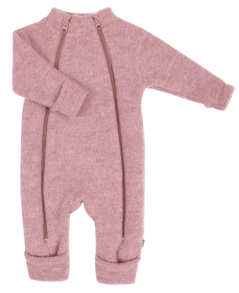 Heldragt med 2 i 1 ombuk ved hænder og fødder. Dobbelt lynlås foran for en nemmere påklædning. En kraftigere børstet uldkvalitet som er ekstra blød og lækker. Heldragten er perfekt at bruge i barnevognen eller autostolen.