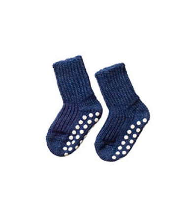 Hirsch uldsokker med dupper, tykke – Blåmeleret
