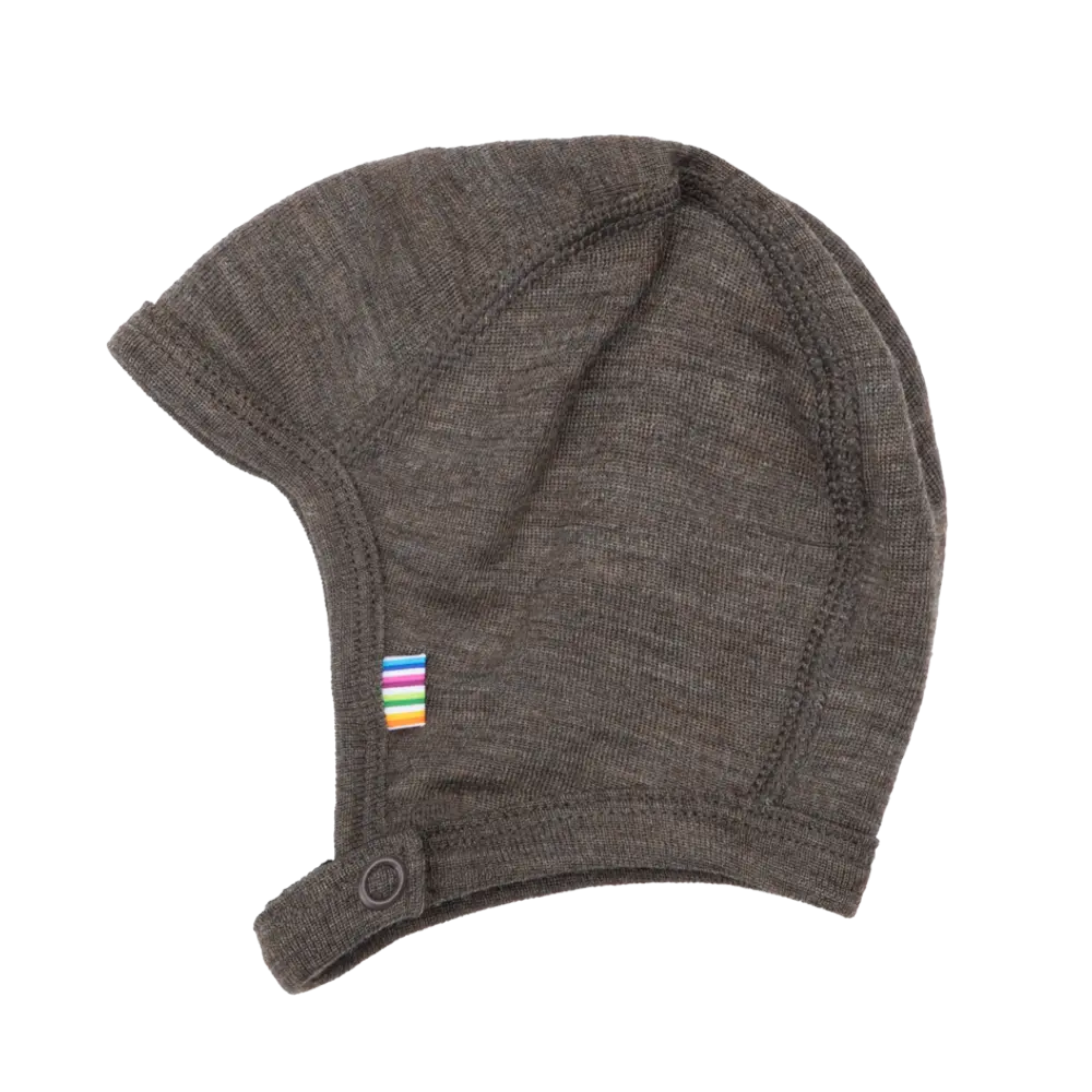Blød og behagelig hjelm med trykknapper under hagen for sikker og nem lukning. Designet i ét lag for let komfort og med en pasform, der sidder godt om hovedet. Fremstillet i en ekstra fin uldkvalitet med silke, som føles utrolig blød mod huden og har et l