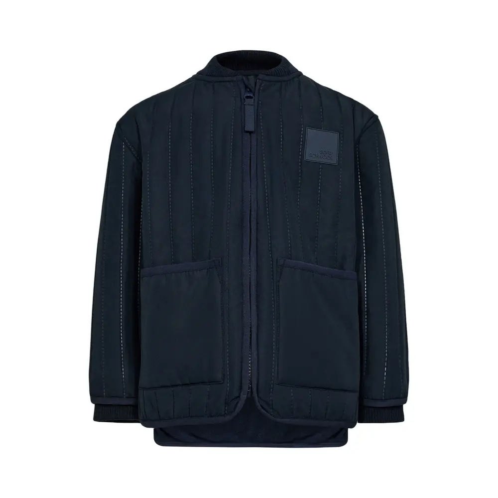 Jakke i navy, med 2 lommer foran og logo på brystet. Lukkes med lynlås