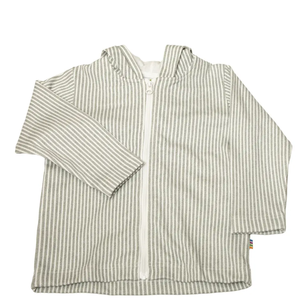 Jakke med hætte og lynlås. En blød og stabil økologisk bomuldskvalitet, som er tæt i strikningen og meget behagelig at have på. Sød stribet print. Oeko-tex 100 mærket.