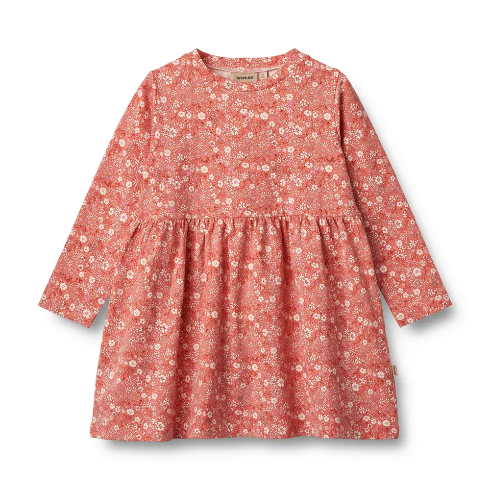 (Indeholder reklamelinks). Langærmet jerseykjole med print i blødt økologisk bomuld til børn.