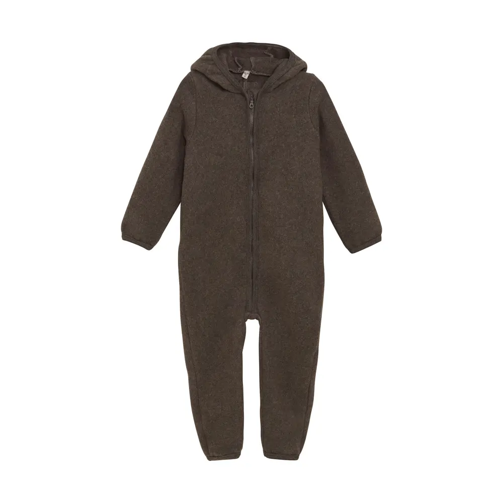 Køredragt m. ører Uld Fleece – Brown Melange – 86