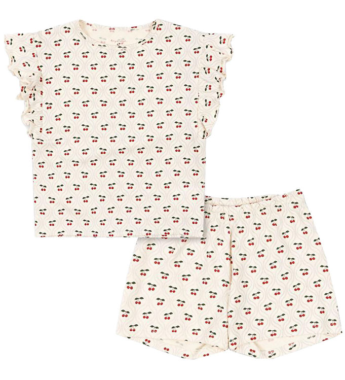 Konges Sløjd Sæt – T-shirt/Shorts – Lin Frill – Cherry Motif