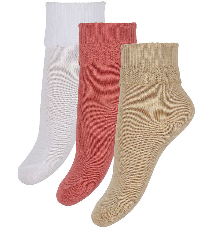 Konges Sløjd Strømper – 3-pak – Frill – Sand/Optic White/Raspber
