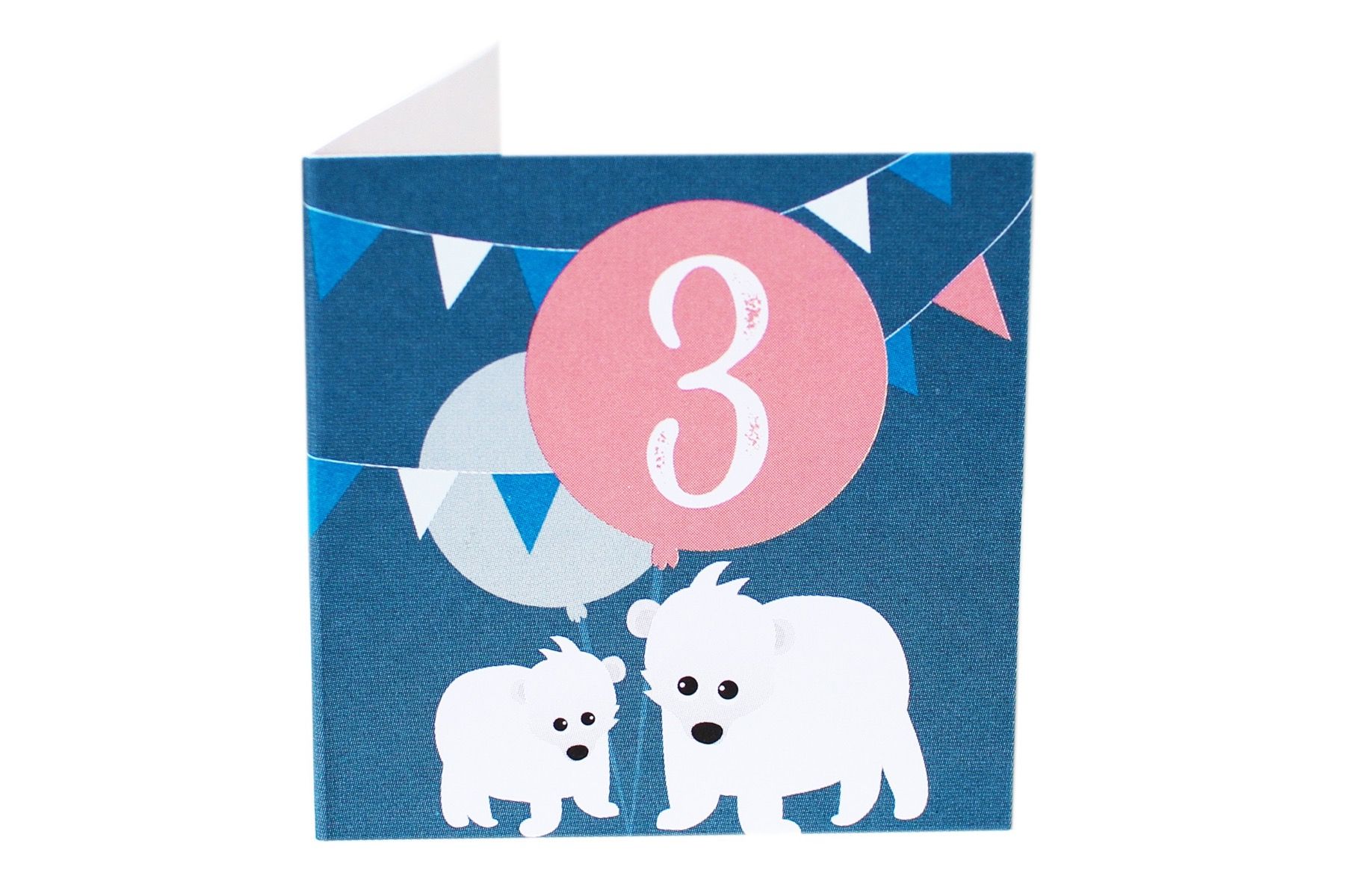 Kort Fødselsdag 3 år isbjørne (Lille)