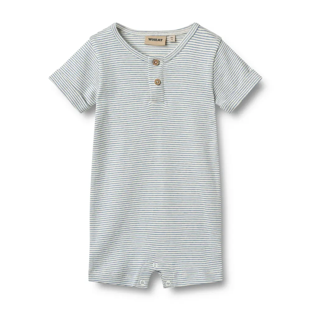 (Indeholder reklamelinks). Stripet sparkedragt med korte ærmer og ben i blød økologisk bomuld til babyer.