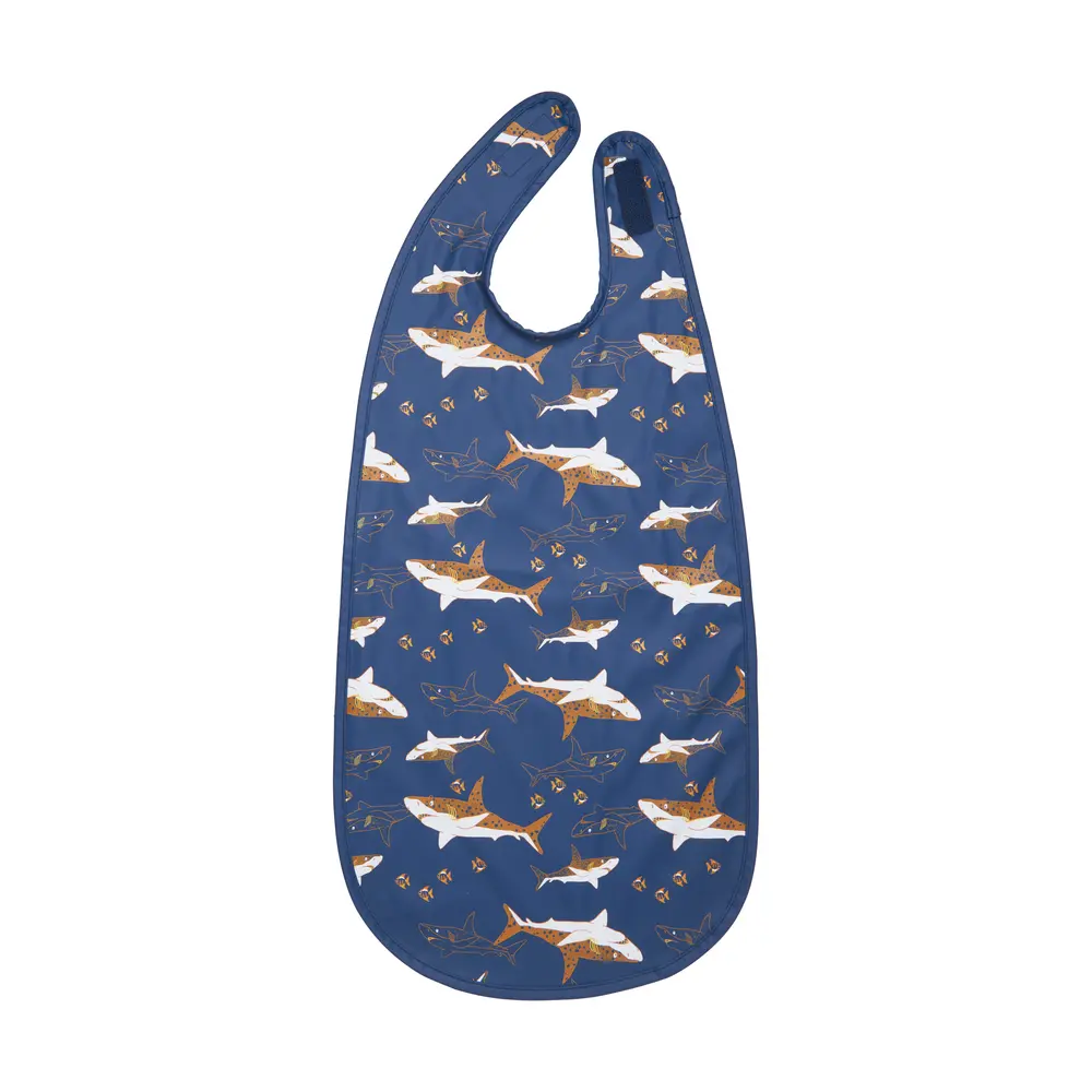 Lang hagesmæk i recycled polyester. Hagesmækken lukkes med velcro bagpå. Med all-over-print.