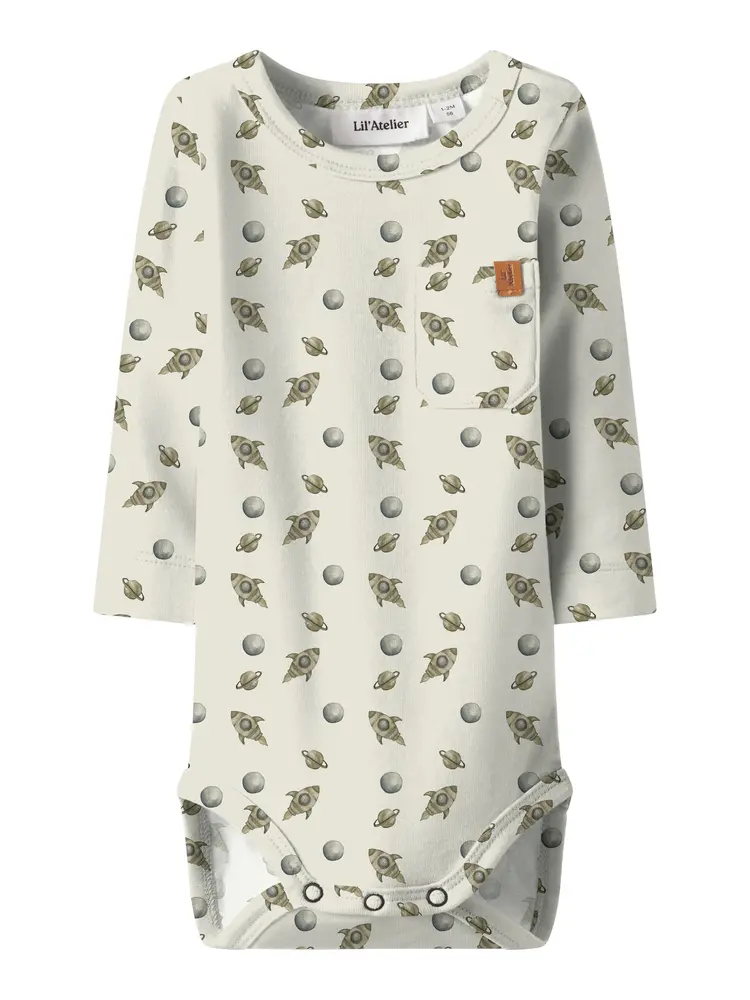 (Indeholder reklamelinks). ⢠Langærmet body med sødt rumtema-print⢠Praktisk brystlomme med lille mærke⢠Bløde trykknapper i bunden for nem påklædning⢠Behagelig pasform og blødt materiale⢠Fra Lil’ Atelier – kendt for kvalitet og fine detaljerLayo Geo Langærmet Body fr… LÆS MERE