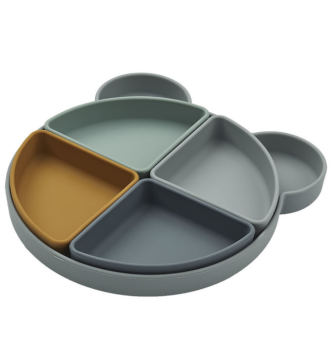 Liewood Tallerken – Arne – Silikone – 4 Rum – Mr Bear/Blue Fog M