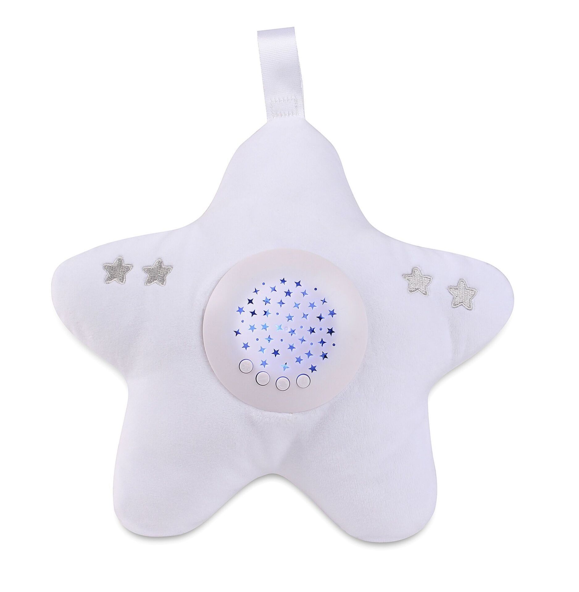 Natlampen fra Little Chick London projekterer en farvet stjernehimmel op i loftet og skaber er b