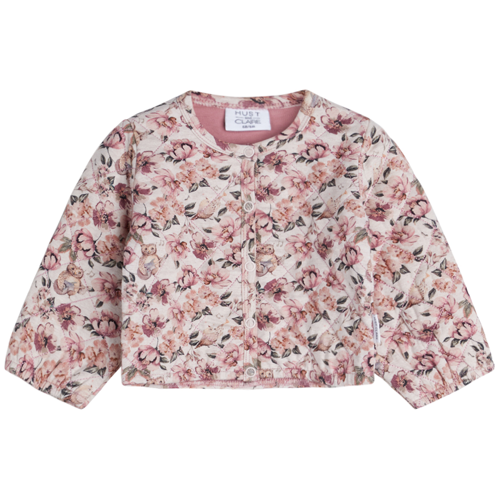 Organic Eva jakke (12 mdr/80 cm) – Quiltet bomulds jakke/cardigan med bomuldsfoer og elastik for neden og i ærmer – Lukkes med trykknapper Wheat melange Eva