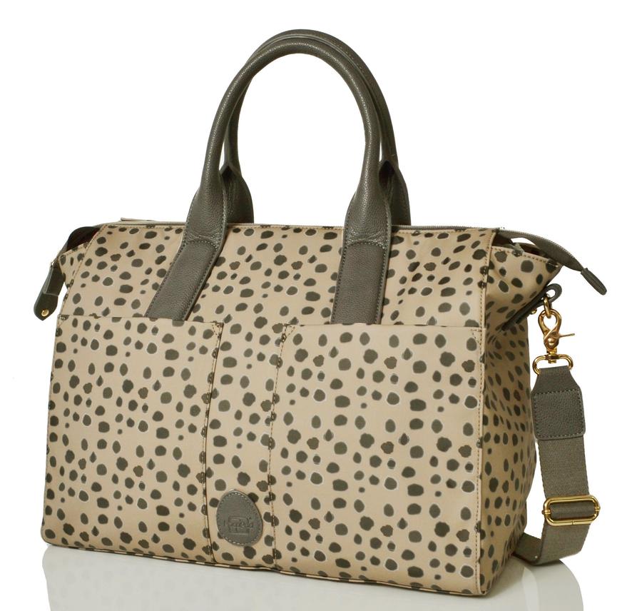 Smuk og rummelig taske – perfekt til weekendture. Tidløst design i kanvas med detaljer i skindlook og gyldent metal. Tasken indeholder hele tre travel-pods, en gennemsigtig til de ting de nemt skal kunne finde, en pod til bleer og puslegrej og en skøn pod