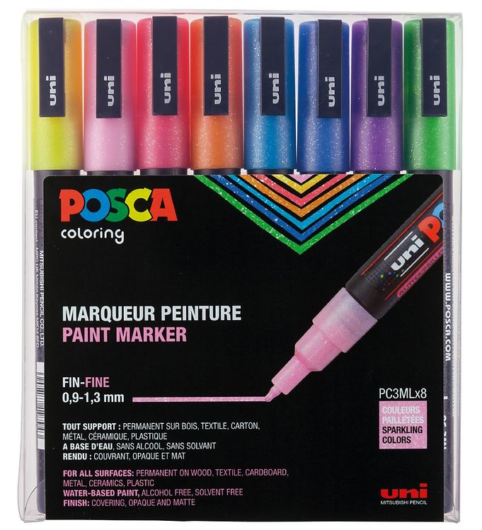 Posca Tuscher – PC-3ML – 8 stk. – Multifarvet m. Glimmer