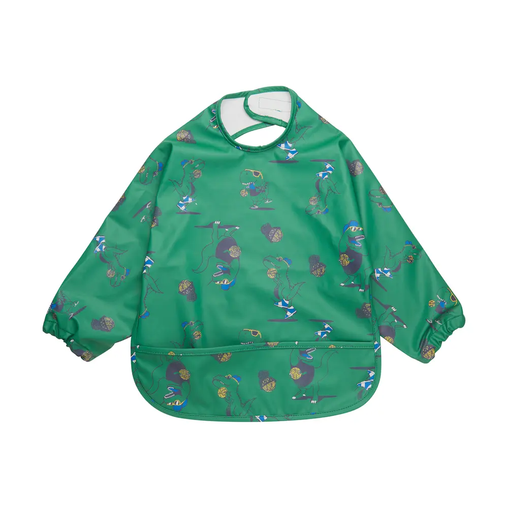 Smart PU-hagesmæk/jakke lavet i recycled materiale. Undgå pletter på dit barns tøj. PU-jakken er utrolig praktisk. Den har velcrolukning i nakken og en opsamlingslomme foran. Praktisk til både spisetid eller ved leg med maling m.m. Med all-over-print.