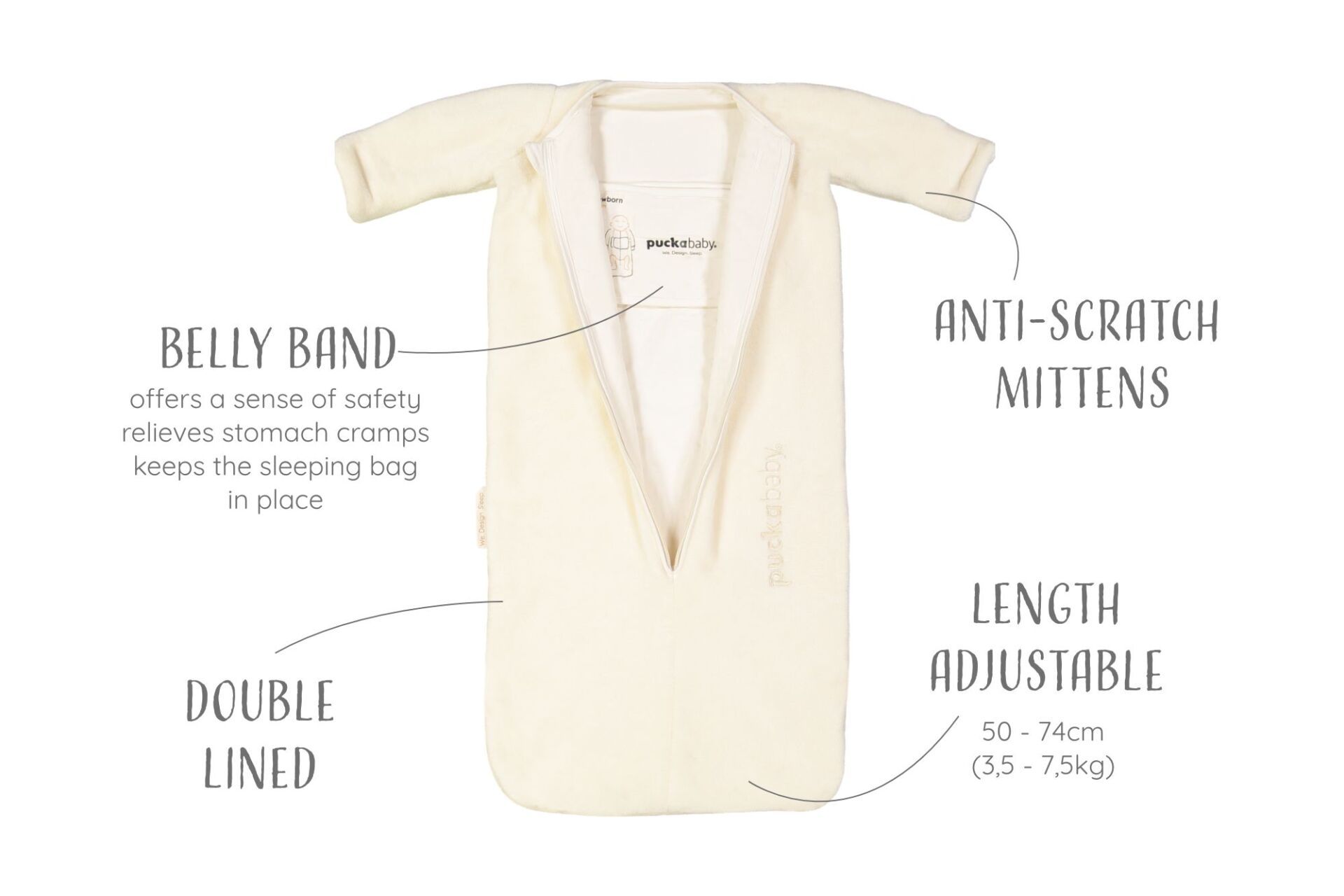 Puckababy the Bag Newborn, 0-6 mdr. / 70 cm, teddy, pure