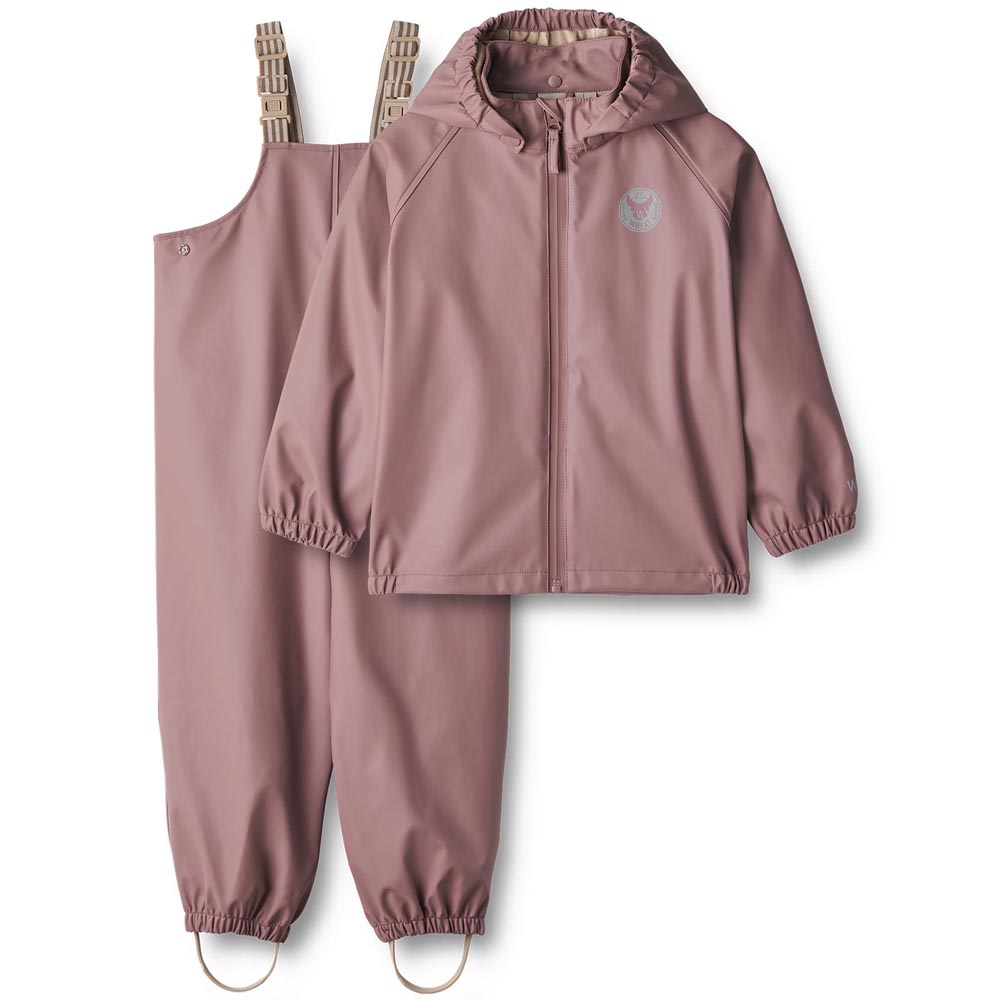Recycled Charlie regntøj (5 år/110 cm) – Polyurethan coating – Lommer i jakken – Trykknapper i taljen for justering – Støvlestropper – Reflekser – Smudsafvisende – Justérbare seler dusty lilac Charlie