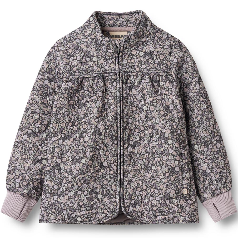 Recycled Thilde termojakke (4 år/104 cm) – A-formet termojakke med høj krave – Blød rib ved ærmeåbning – Lynlås foran med hagebeskytter – Vandafvisende 9527 black sea flowers Thilde