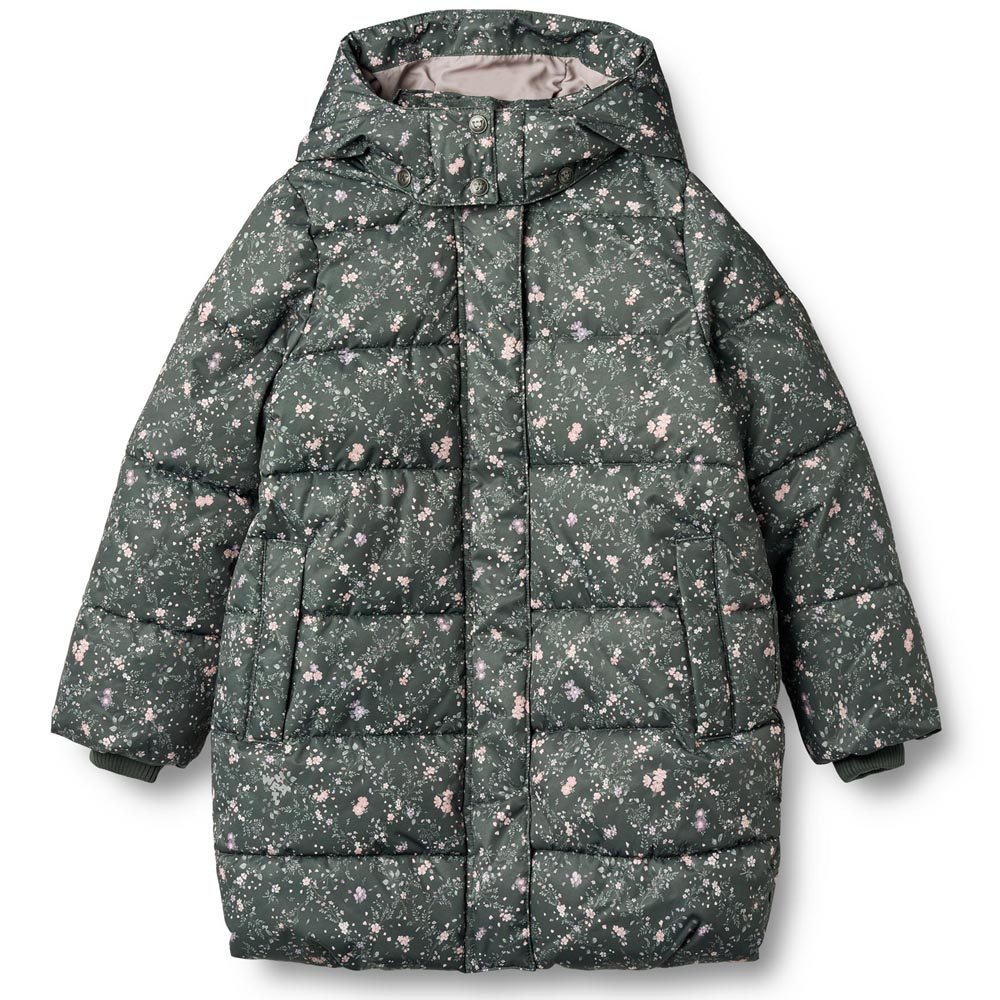 Recycled Yrsa pufferjakke (3 år/98 cm) – Lang vinterjakke til knæ – Aftagelig og justerbar hætte – Blød rib ved ærmeåbning – Skjult lynlås foran – Stolpe lukkes med trykknapper 9533 forest lake check flowers Yrsa