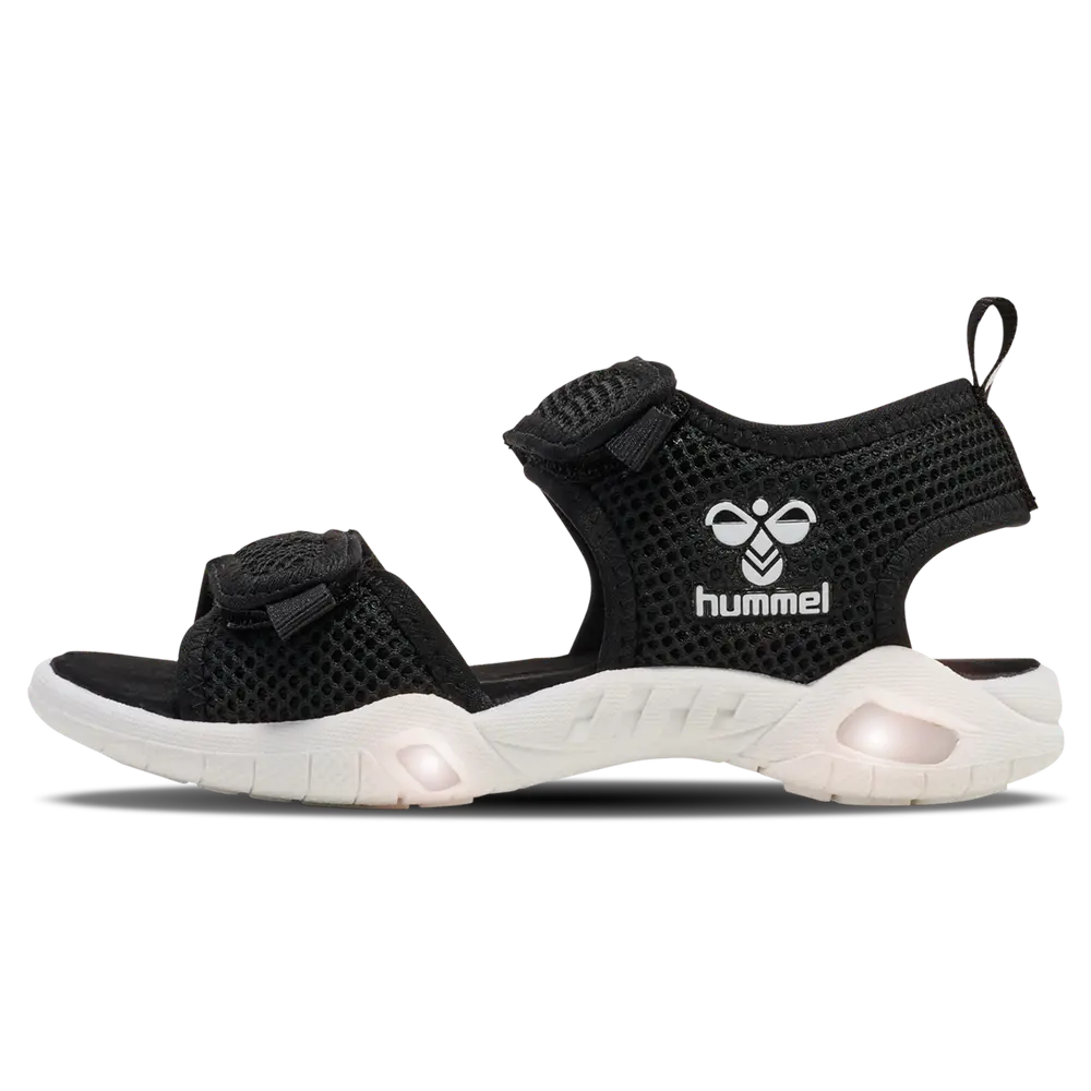 Med SANDAL FLASH sandalerne vil aktive børn have det behageligt. Denne hummel® sandal er konstrueret med en meshoverdel, der har en ankelrem til at holde sandalen sikkert på plads, og en blinkende skridfast gummisål. Bumblebee® logo i en kontrastfarve ful