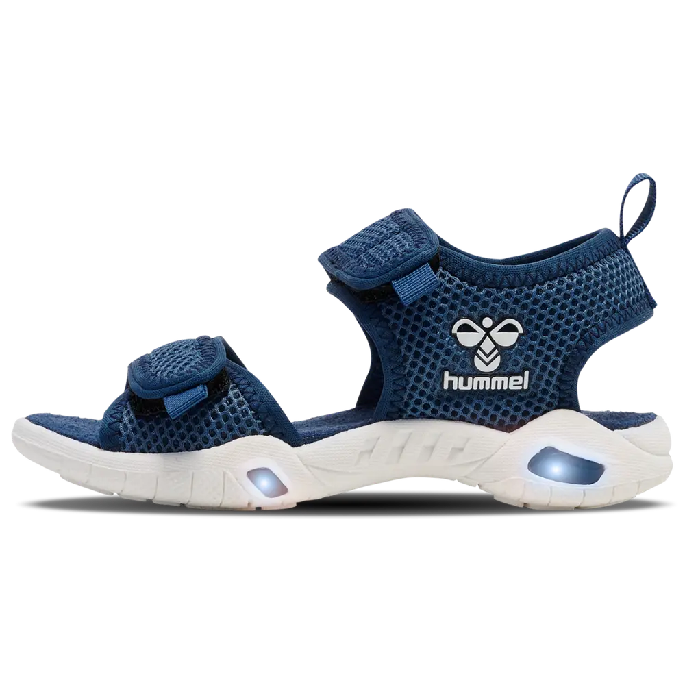Med SANDAL FLASH sandalerne vil aktive børn have det behageligt. Denne hummel® sandal er konstrueret med en meshoverdel, der har en ankelrem til at holde sandalen sikkert på plads, og en blinkende skridfast gummisål. Bumblebee® logo i en kontrastfarve ful
