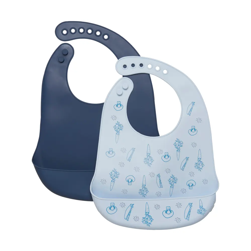 Spisesmæk i silikone. Praktisk hagesmæk der er blød og nem at bruge til baby og børn. Med praktisk opsamler der gør spisetiden nemmere.